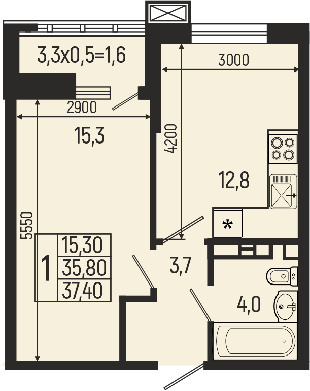 Планировка 1 комн. в ЖК Звёзды