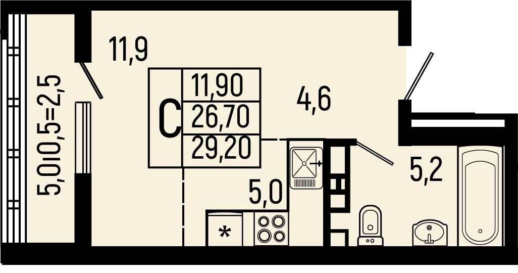 Планировка 1 комн. в ЖК Звёзды