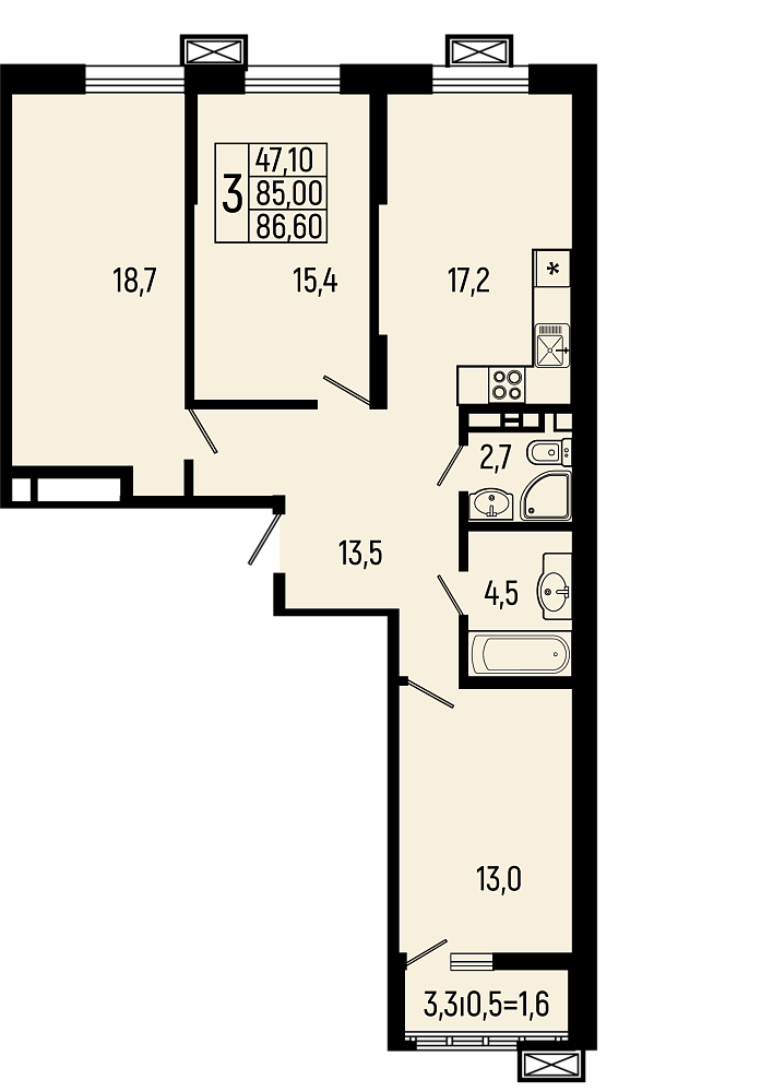 3-комнатная