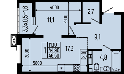 Планировка 1 комн. в ЖК Звёзды