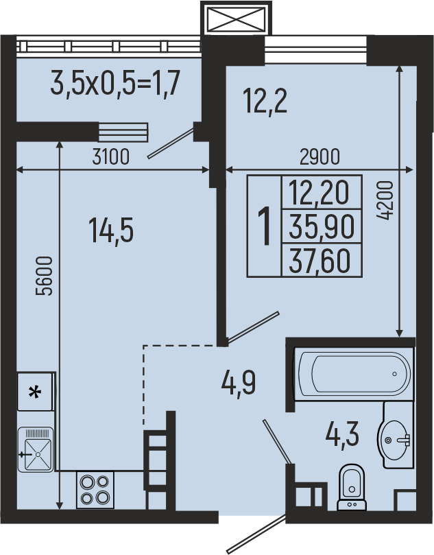 Планировка 1 комн. в ЖК Звёзды