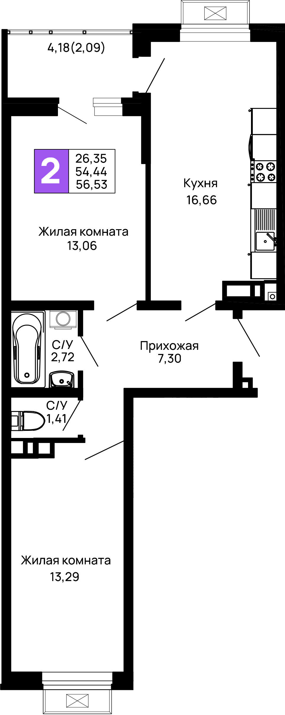 - ✅ Кухня: 16.66 м² — место для кулинарных шедевров.