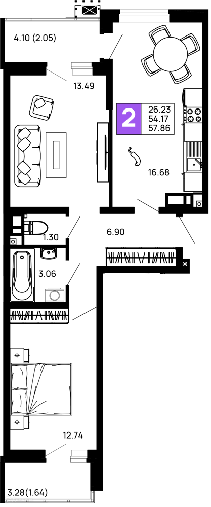 - ✅ Кухня: 16.68 м² — место для кулинарных шедевров.