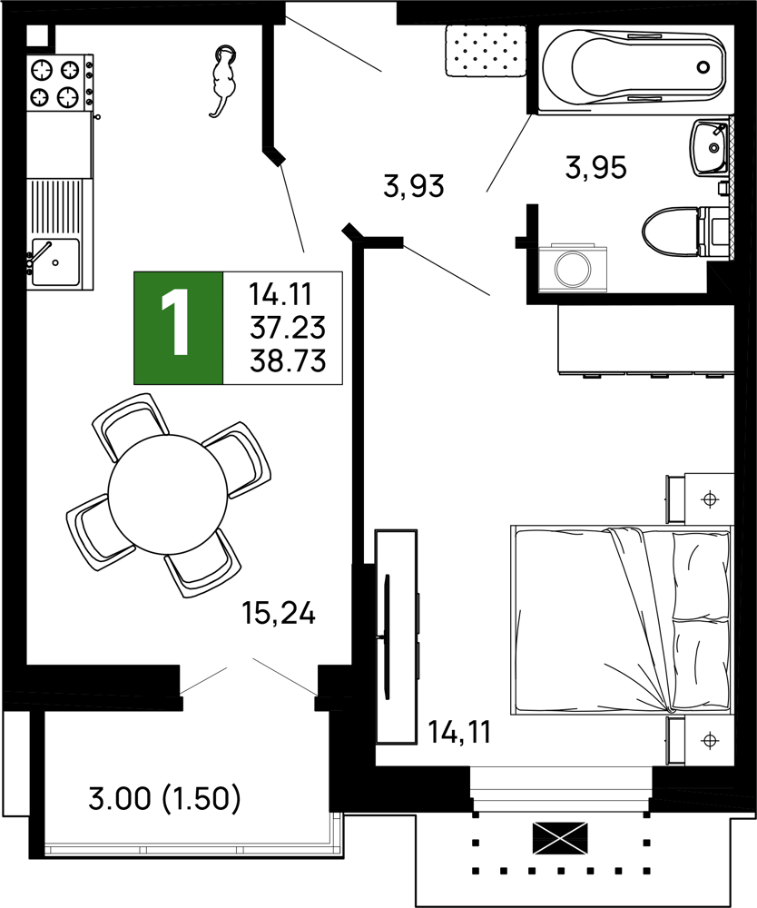 - ✅ Кухня: 15.24 м² — место для кулинарных шедевров.