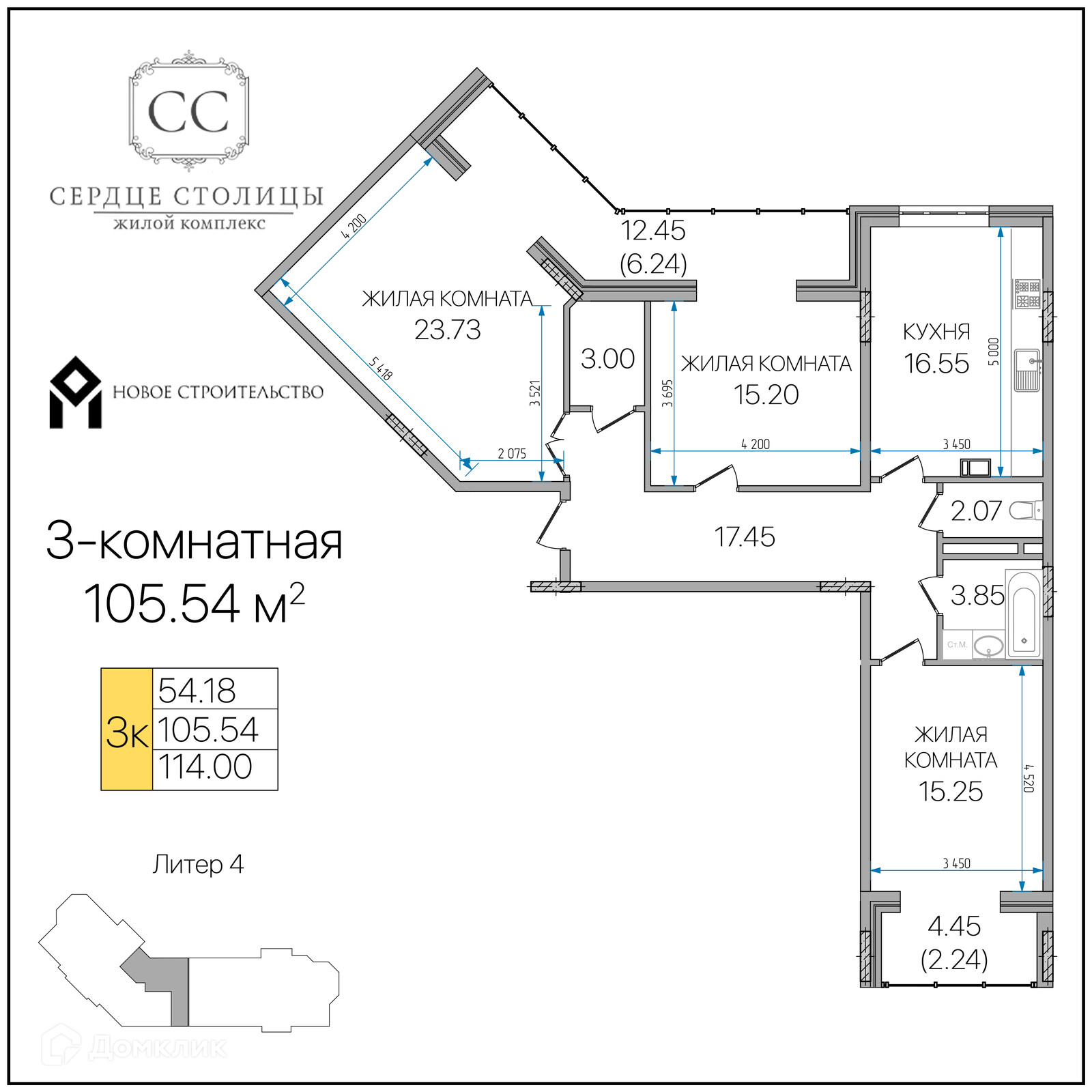 В продаже 3-комнатная квартира в востребованном жилом комплексе "«Сердце столицы»" 🏢. Квартира расположена на 9-м этаже 16-этажного дома. Прекрасный выбор для семьи.