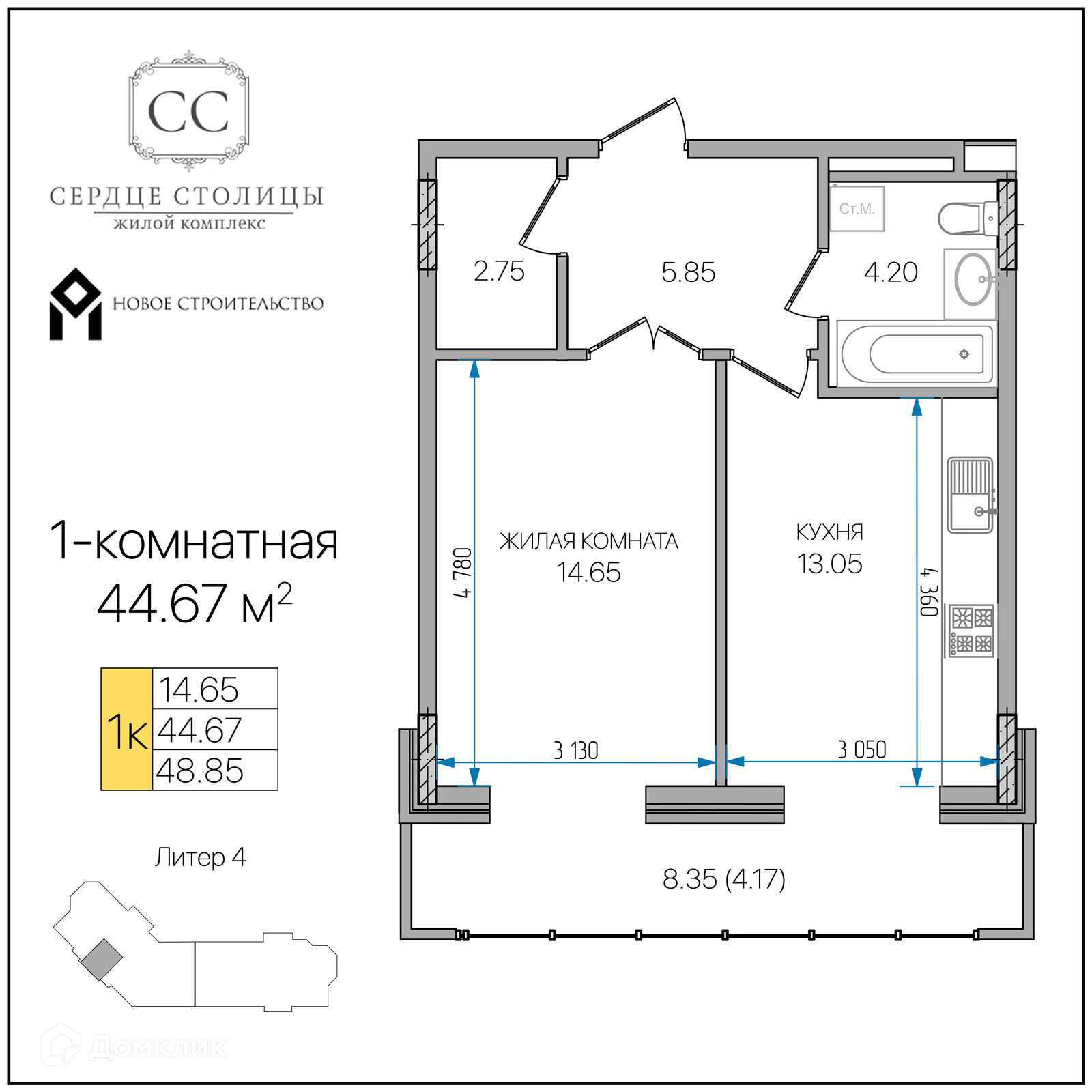 Предлагается 1-комнатная квартира в новом жилом комплексе "«Сердце столицы»" 🏢. Квартира расположена на 9-м этаже 16-этажного дома. Отличный вариант для семьи.
