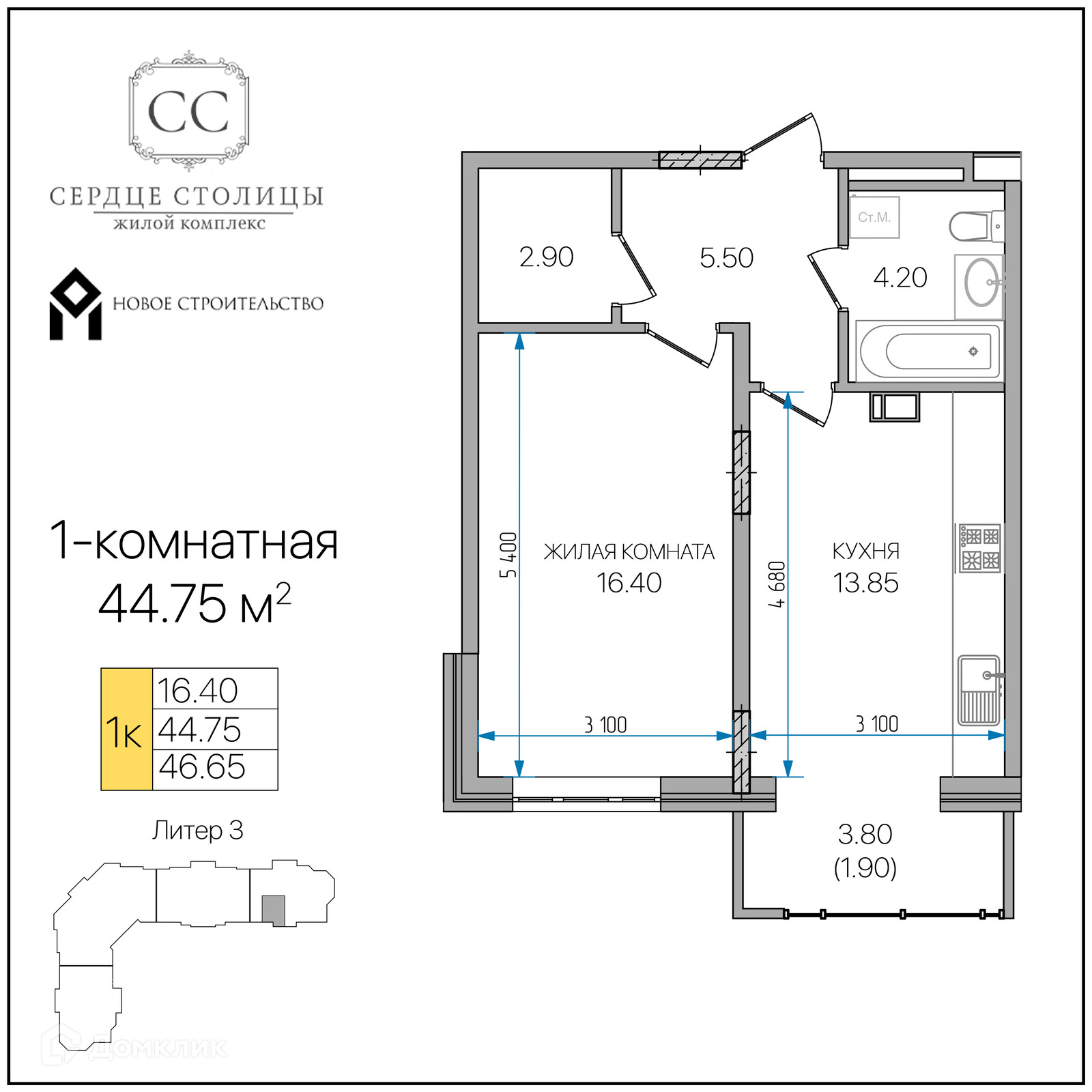 Предлагается 1-комнатная квартира в современном жилом комплексе "«Сердце столицы»" 🏢. Квартира расположена на 4-м этаже 16-этажного дома. Отличный вариант для комфортной жизни.