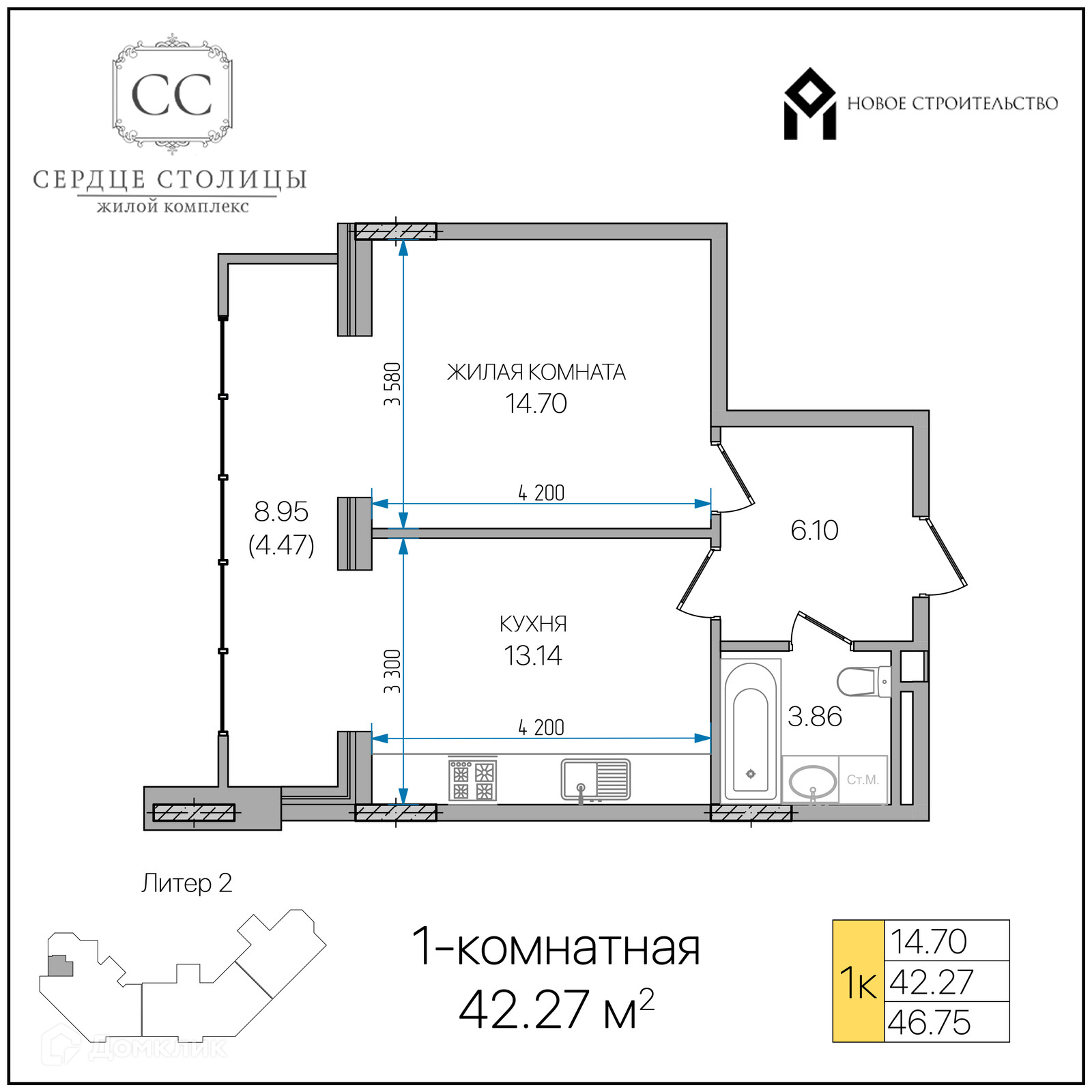 В продаже 1-комнатная квартира в новом жилом комплексе "«Сердце столицы»" 🏢. Квартира расположена на 10-м этаже 16-этажного дома. Прекрасный выбор для комфортной жизни.