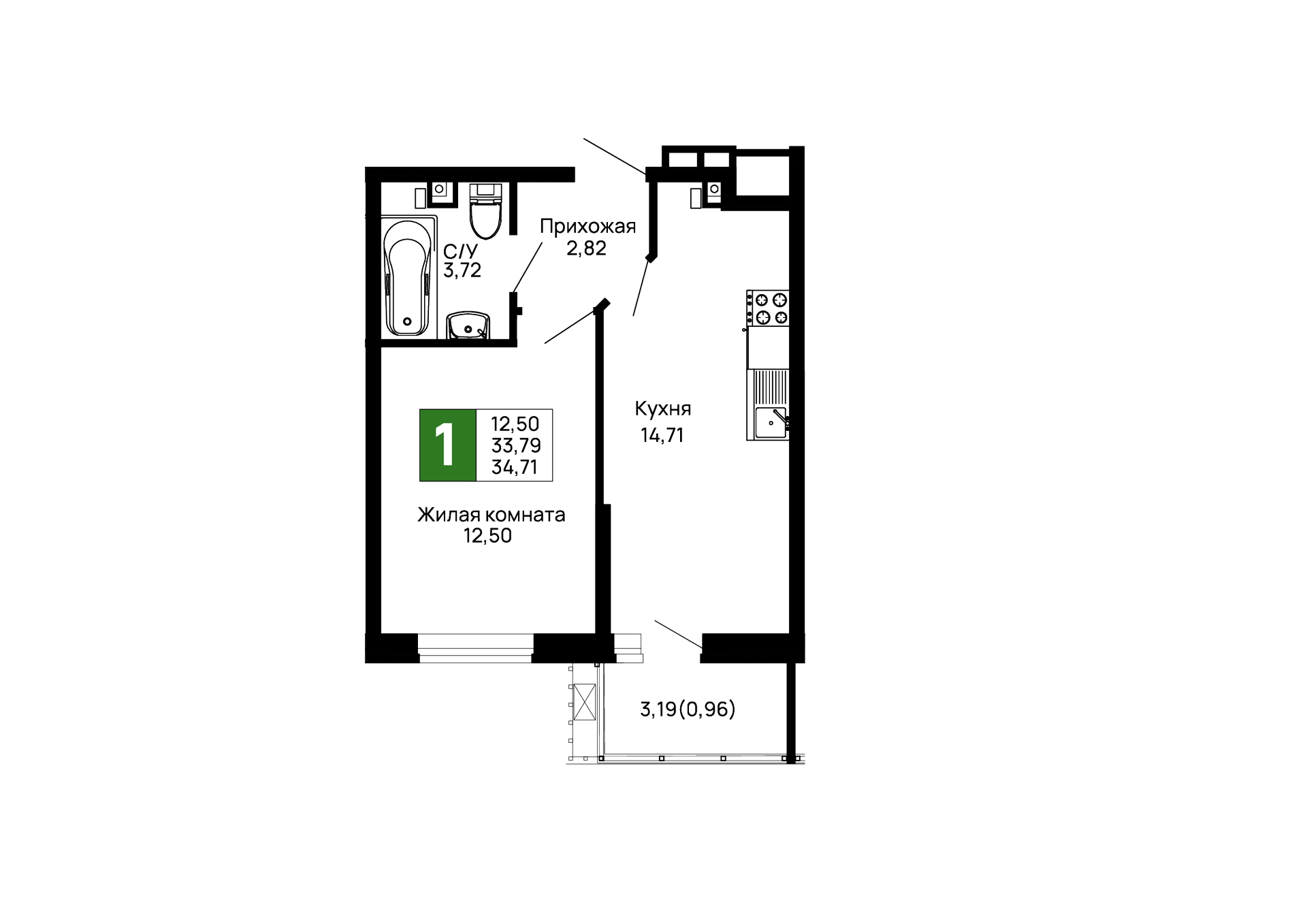 - ✅ Кухня: 14.71 м² — место для кулинарных шедевров.