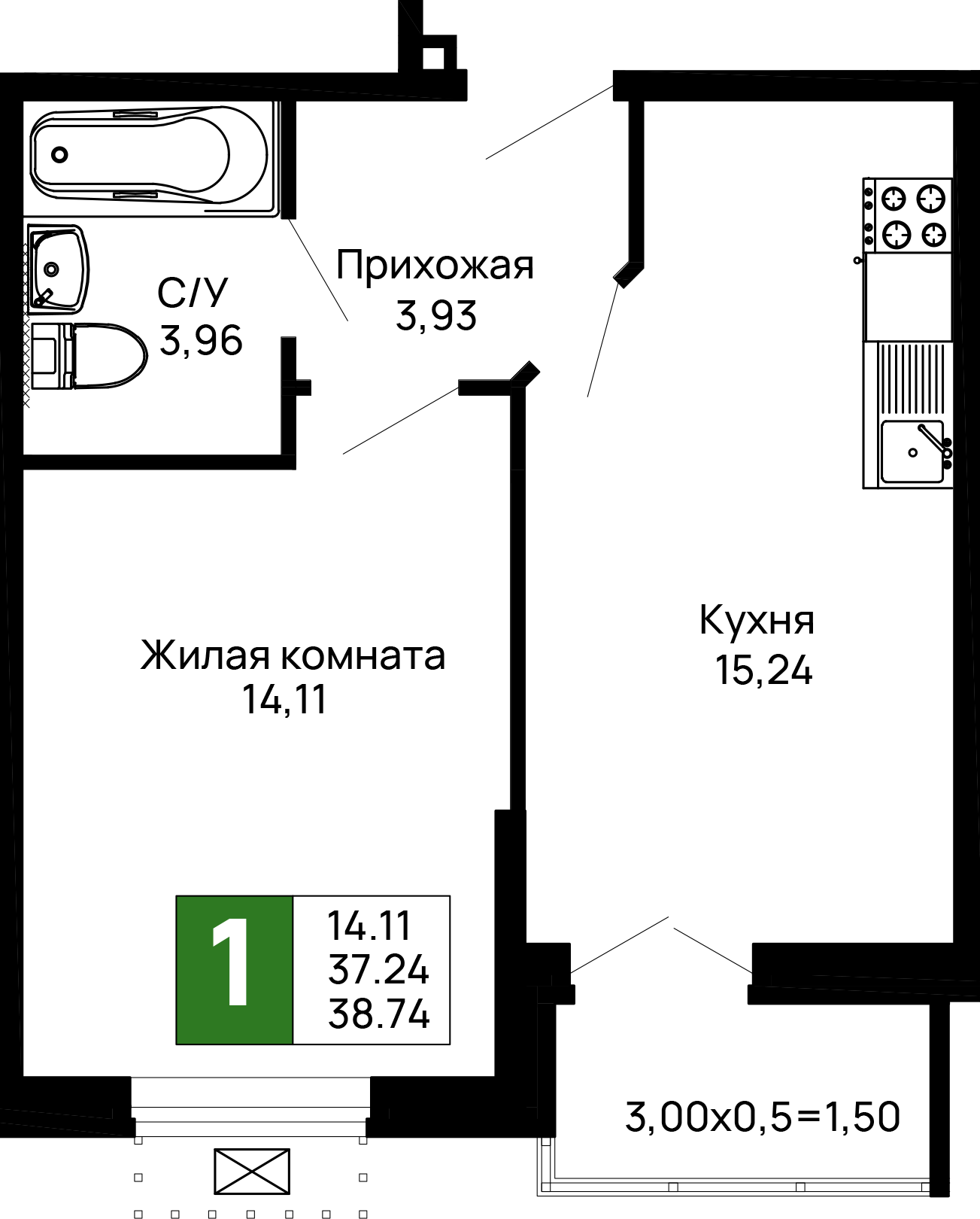 - ✅ Кухня: 15.24 м² — идеальна для семейных ужинов.