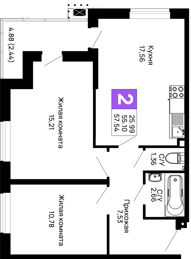 - ✅ Кухня: 17.56 м² — идеальна для семейных ужинов.