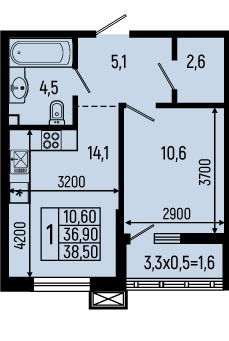 Планировка 1 комн. в ЖК Звёзды