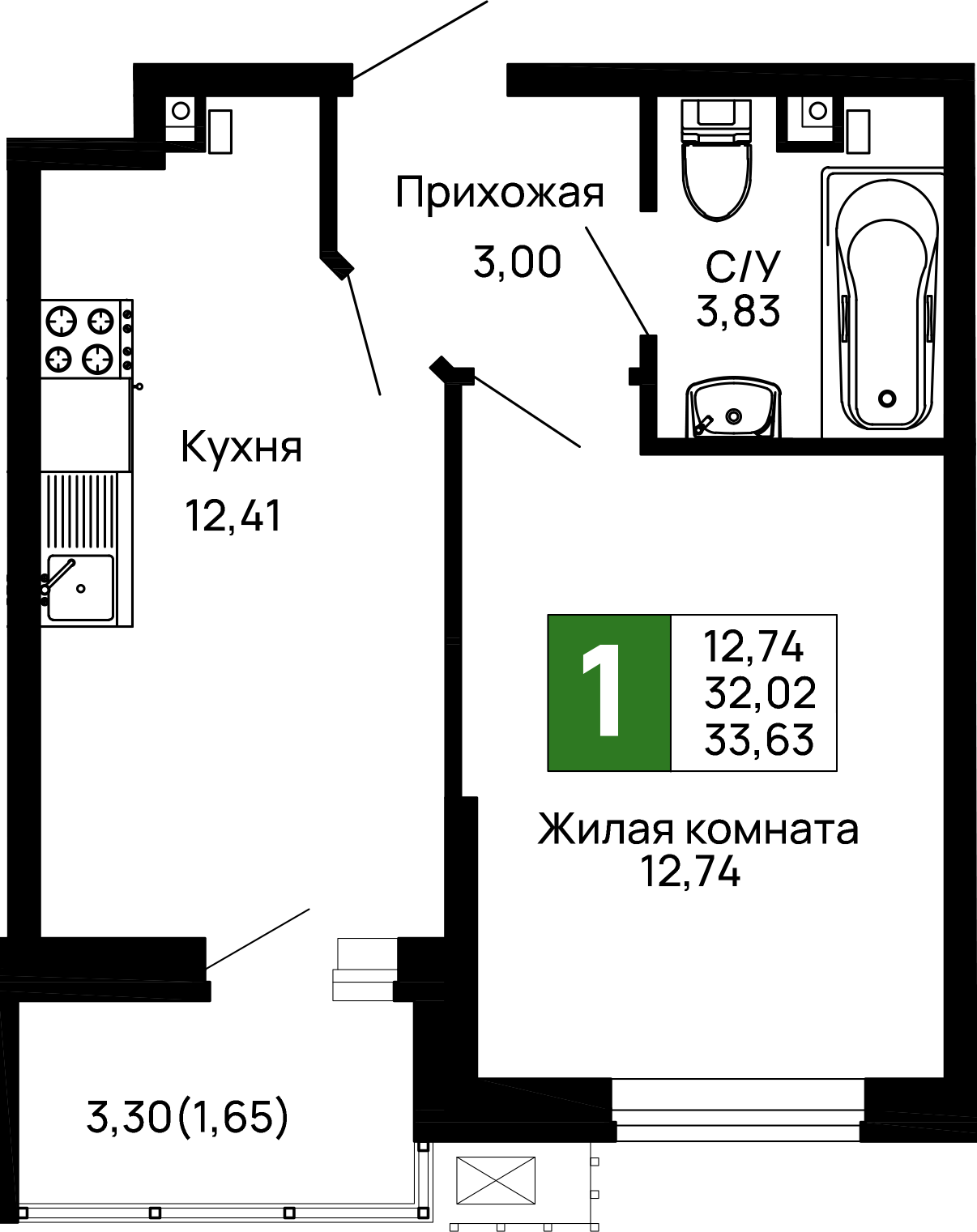 - ✅ Кухня: 12.41 м² — идеальна для семейных ужинов.