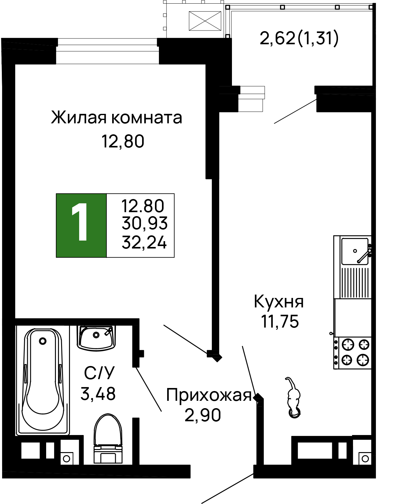 - ✅ Кухня: 11.75 м² — идеальна для семейных ужинов.