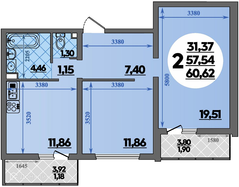 Площади квартир