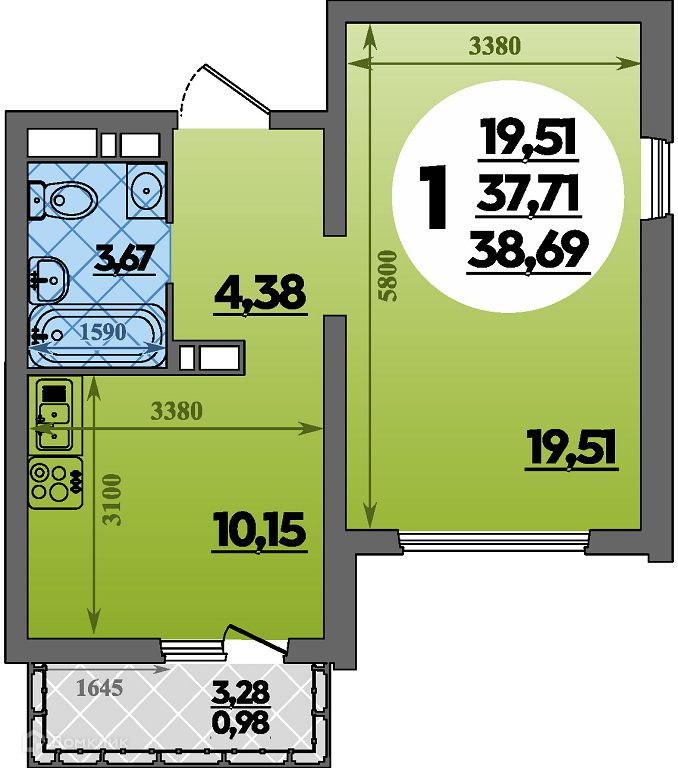 Планировка Студия в ЖК Предгорье Лаго-Наки