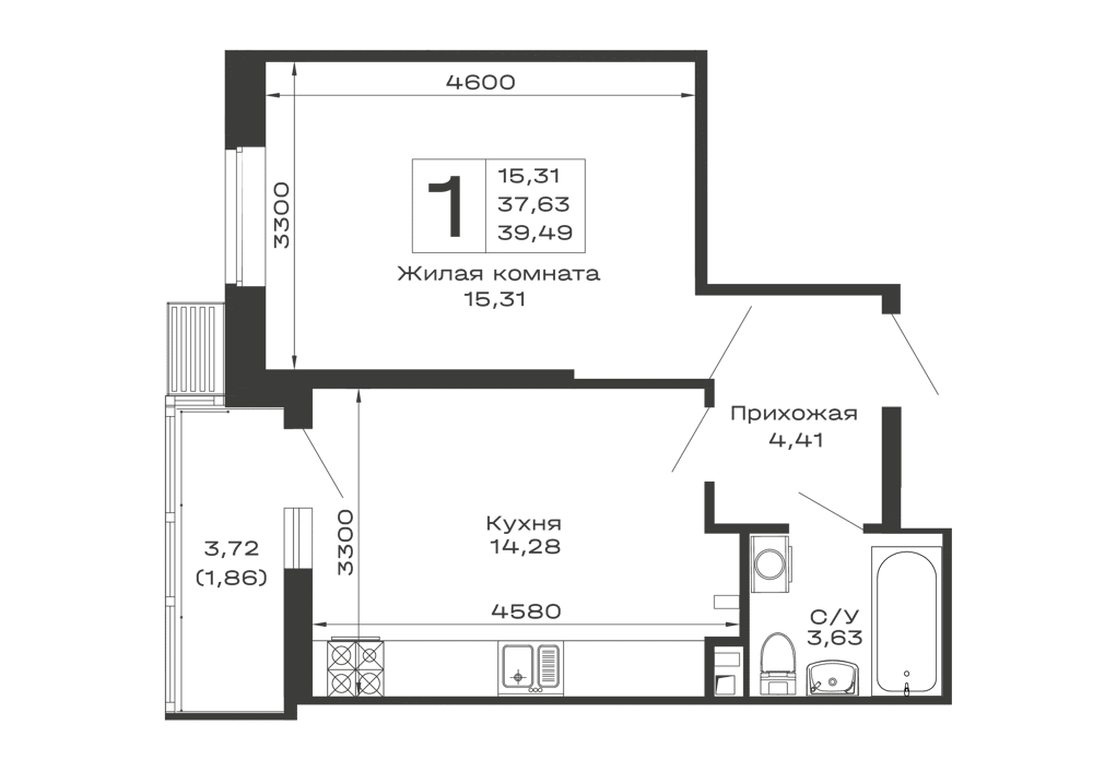 - ✅ Кухня: 14.28 м² — идеальна для семейных ужинов.