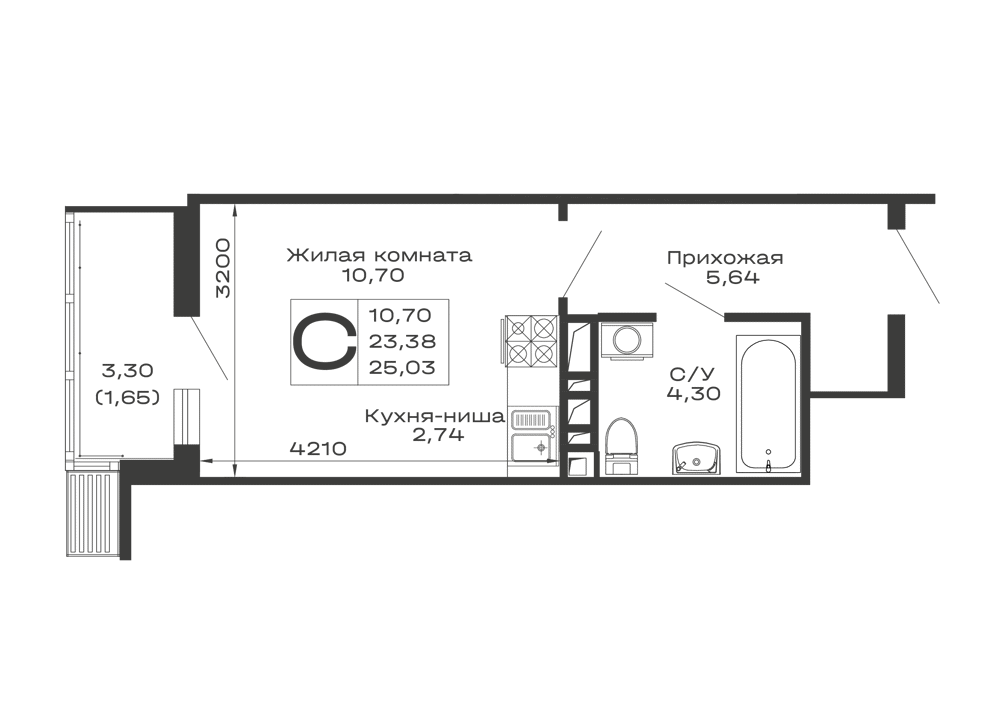 - ✅ Кухня: 2.74 м² — эргономичное пространство.