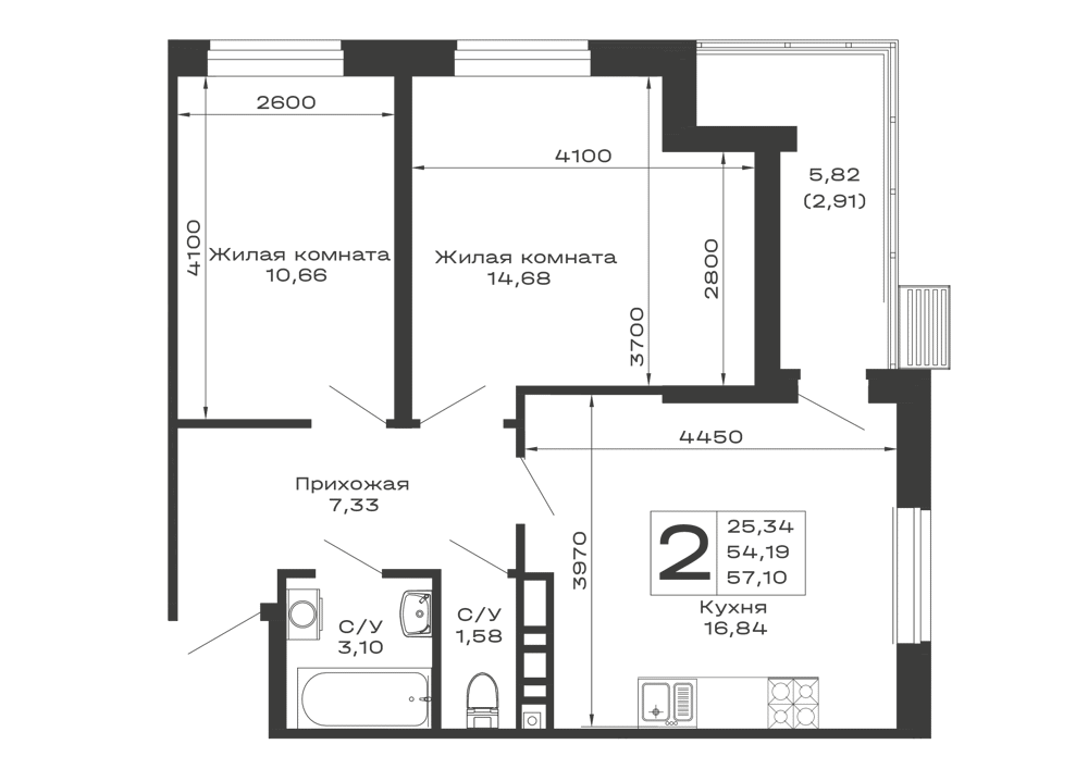 - ✅ Кухня: 16.84 м² — место для кулинарных шедевров.
