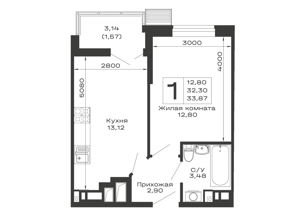 - ✅ Кухня: 13.12 м² — идеальна для семейных ужинов.