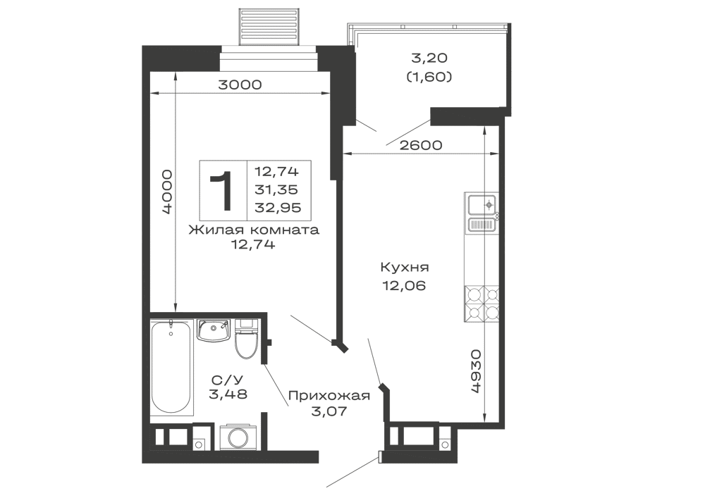 1-комнатная
