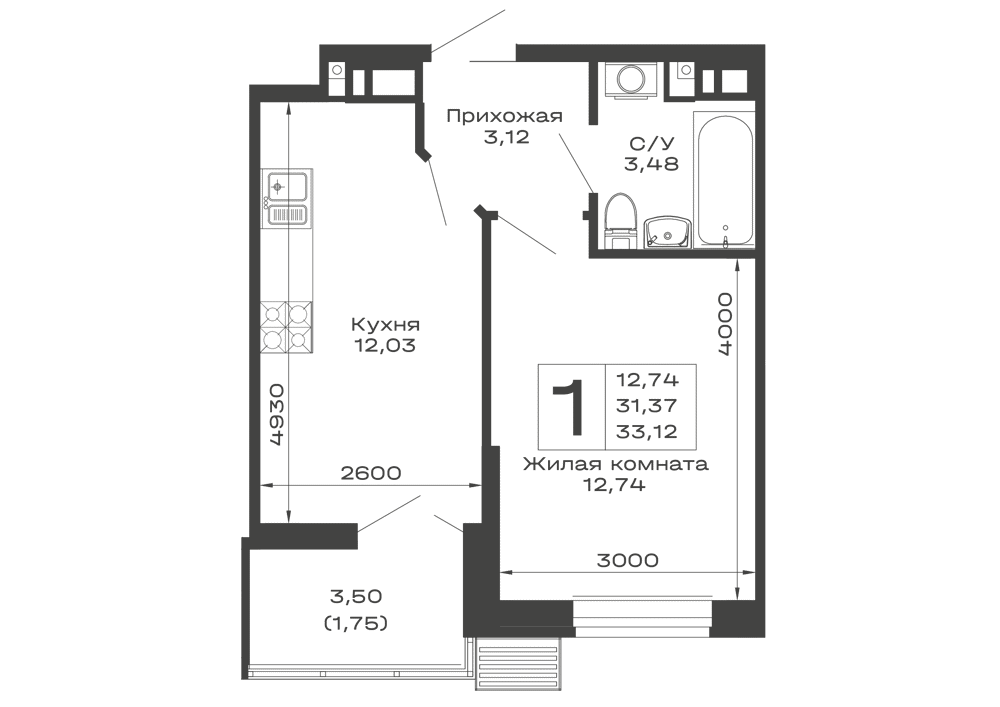 - ✅ Кухня: 12.03 м² — место для кулинарных шедевров.