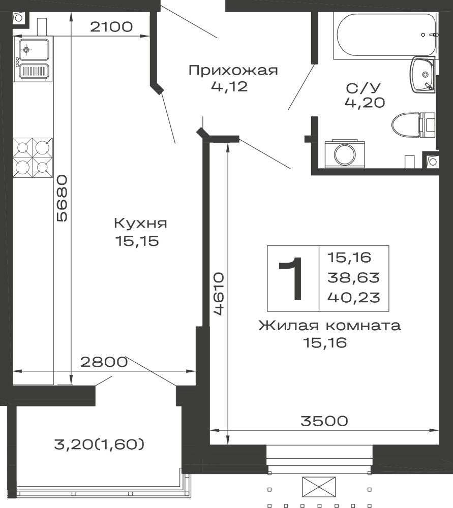 - ✅ Кухня: 15.15 м² — эргономичное пространство.