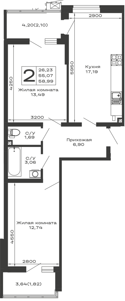 - ✅ Кухня: 17.19 м² — идеальна для семейных ужинов.