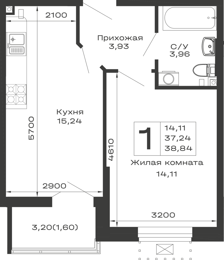 - ✅ Кухня: 15.24 м² — идеальна для семейных ужинов.