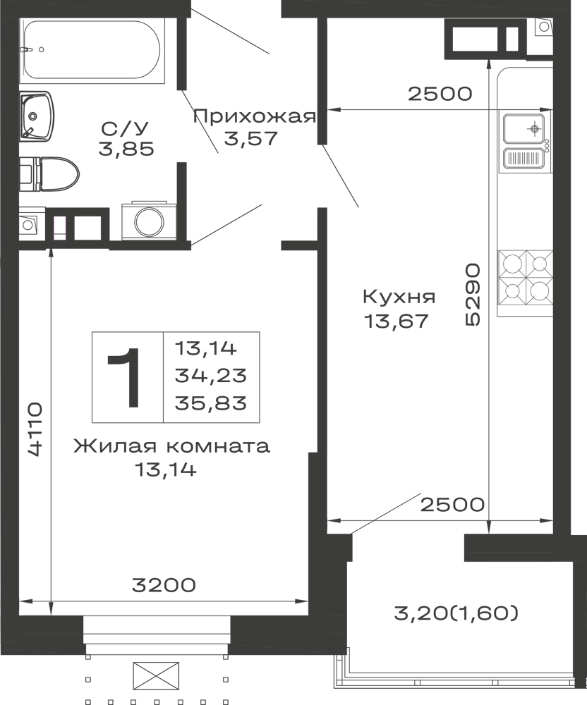 - ✅ Кухня: 13.67 м² — место для кулинарных шедевров.