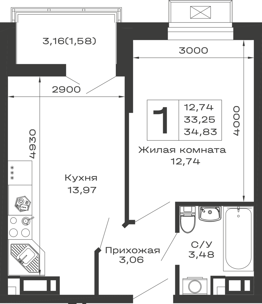 - ✅ Кухня: 13.97 м² — место для кулинарных шедевров.