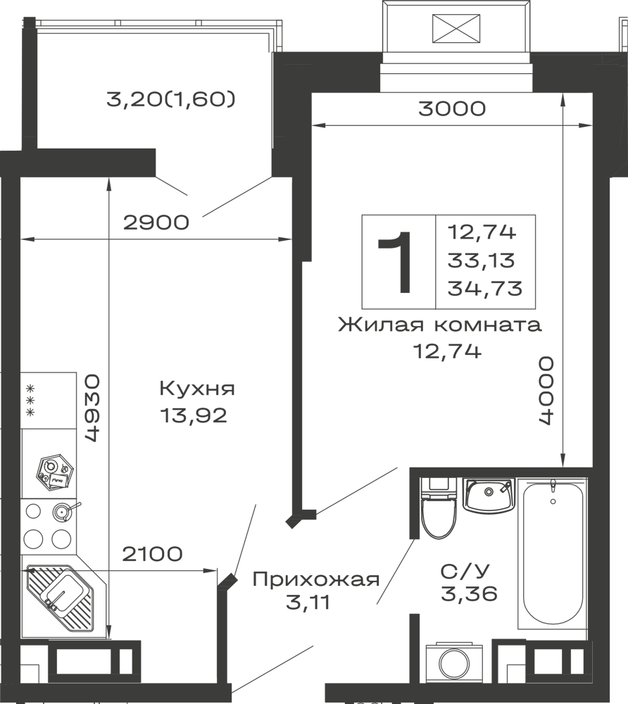 - ✅ Кухня: 13.92 м² — идеальна для семейных ужинов.