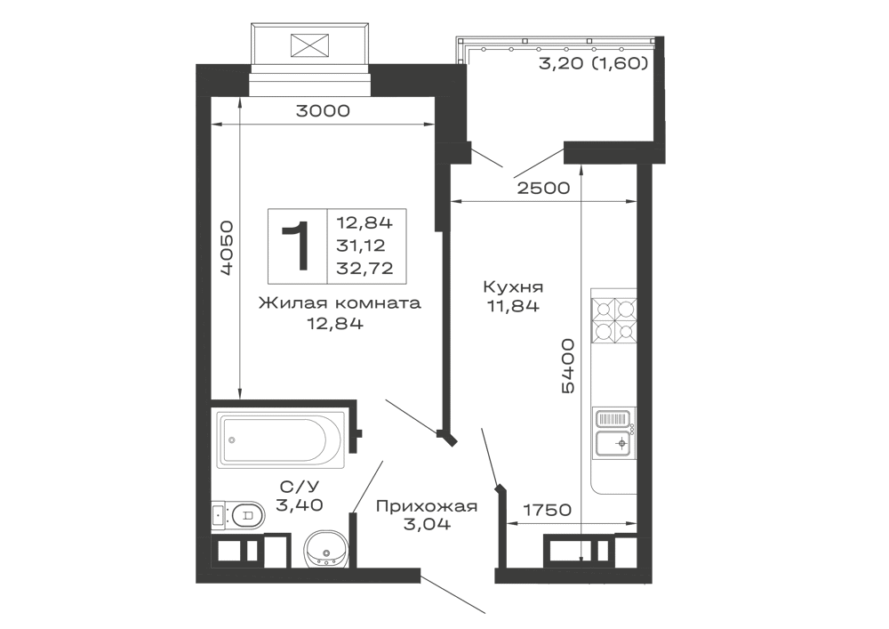 1-комнатная