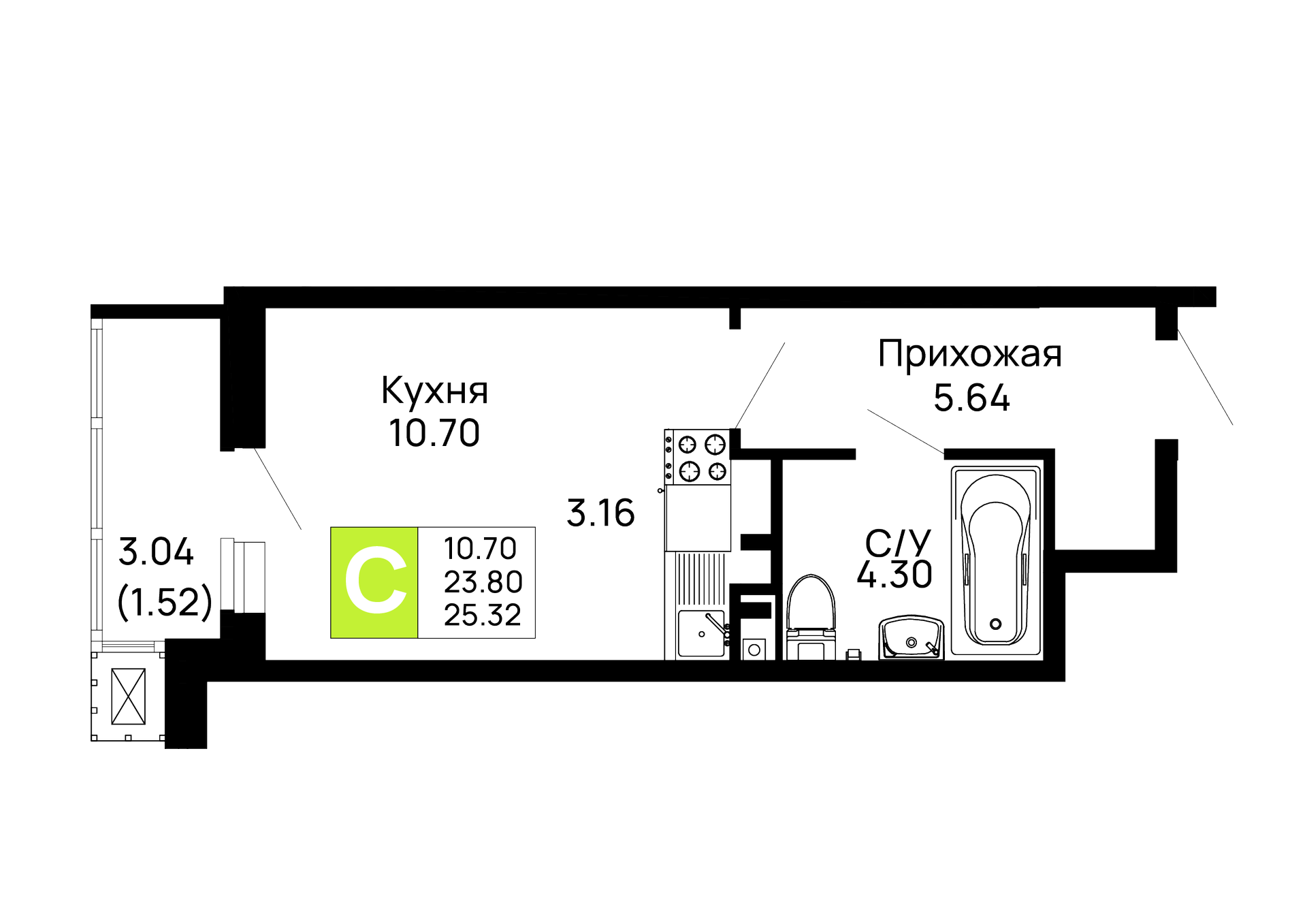- ✅ Кухня: 3.16 м² — место для кулинарных шедевров.
