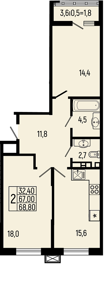 Планировка 1 комн. в ЖК Звёзды