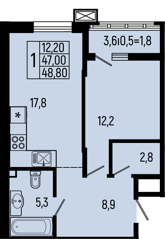 Планировка 1 комн. в ЖК Звёзды