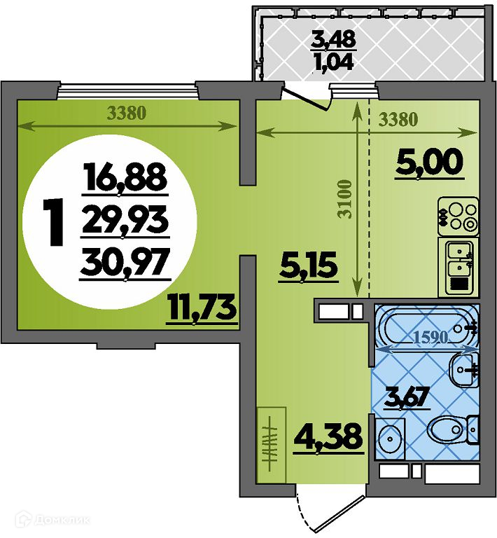 Планировка Студия в ЖК Предгорье Лаго-Наки