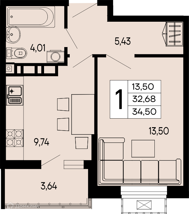 Планировка 1 комн. в "Эпос"