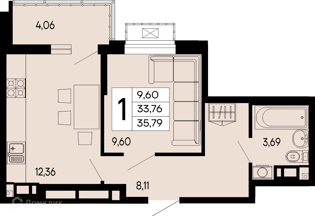 Планировка 1 комн. в "Эпос"