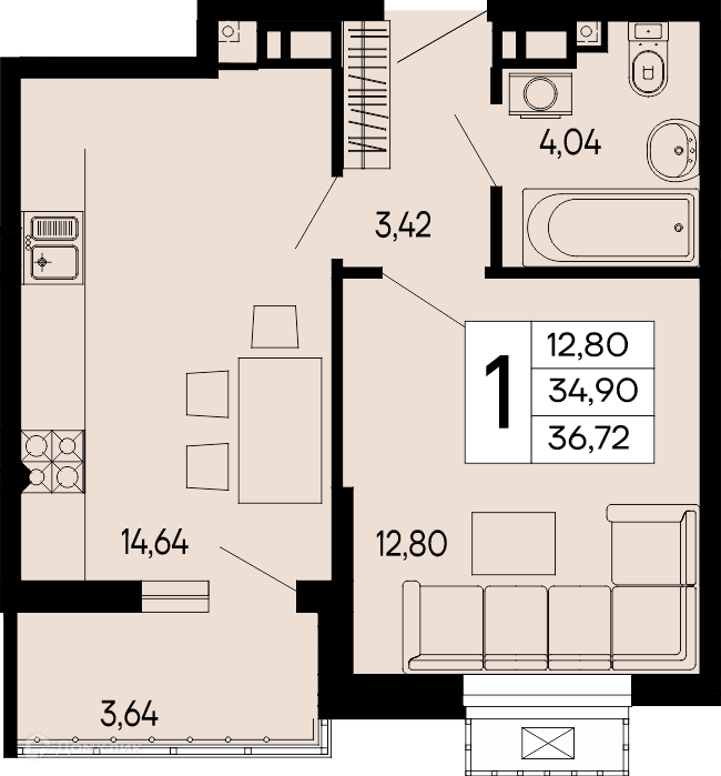 Предлагается 1-комнатная квартира в современном жилом комплексе ""Эпос"" 🏢. Квартира расположена на 3-м этаже 16-этажного дома. Прекрасный выбор для семьи.