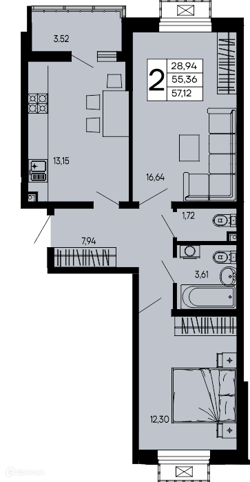 Продается 2-комнатная квартира в современном жилом комплексе ""Эпос"" 🏢. Квартира расположена на 2-м этаже 16-этажного дома. Отличный вариант для инвестиций.