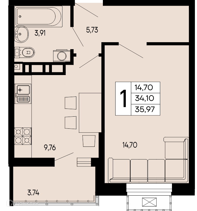 Планировка 1 комн. в "Эпос"