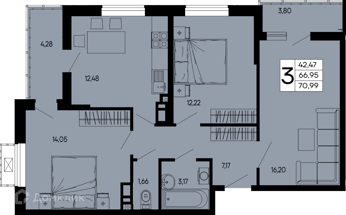 Доступна к покупке 3-комнатная квартира в современном жилом комплексе ""Эпос"" 🏢. Квартира расположена на 3-м этаже 16-этажного дома. Прекрасный выбор для инвестиций.