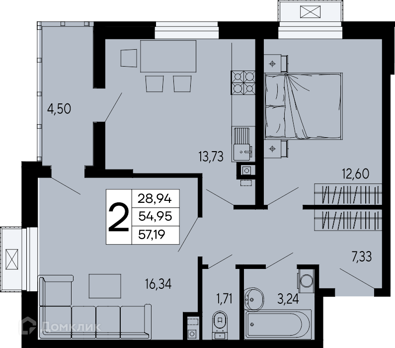 Предлагается 2-комнатная квартира в новом жилом комплексе ""Эпос"" 🏢. Квартира расположена на 2-м этаже 16-этажного дома. Прекрасный выбор для семьи.