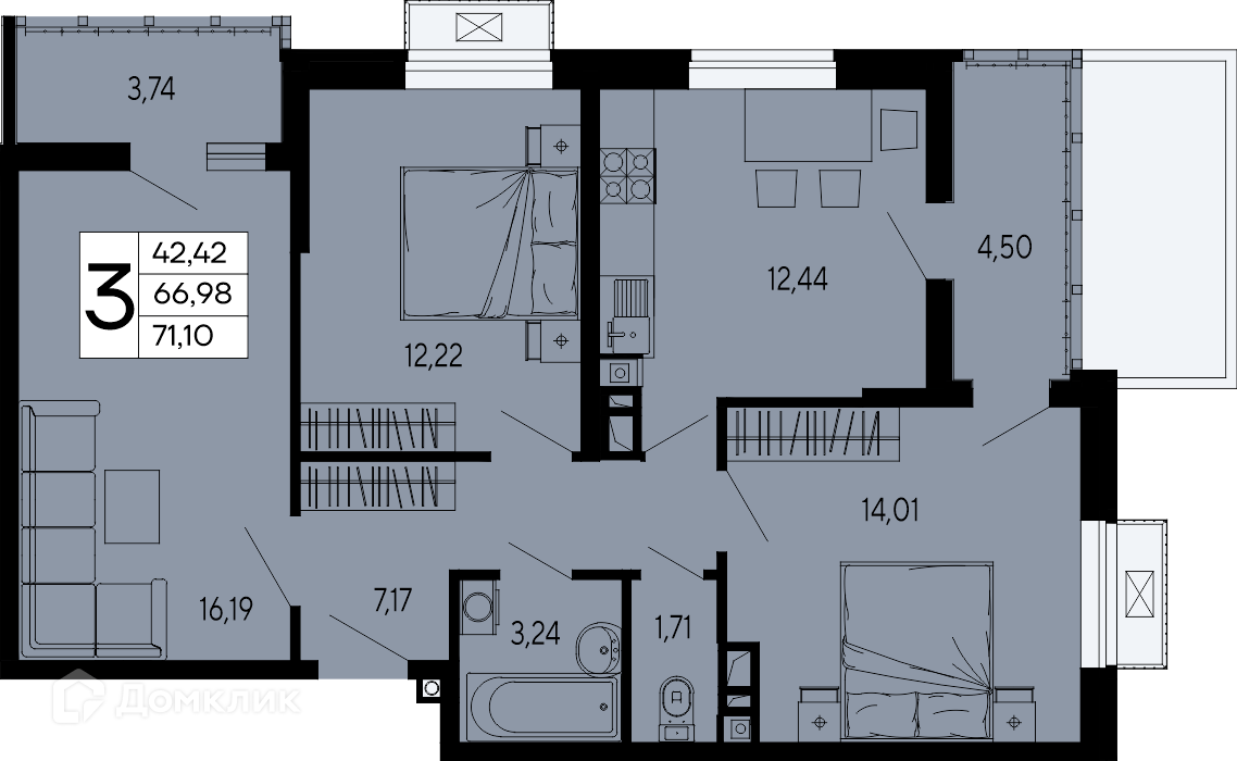 Предлагается 3-комнатная квартира в востребованном жилом комплексе ""Эпос"" 🏢. Квартира расположена на 3-м этаже 16-этажного дома. Прекрасный выбор для комфортной жизни.