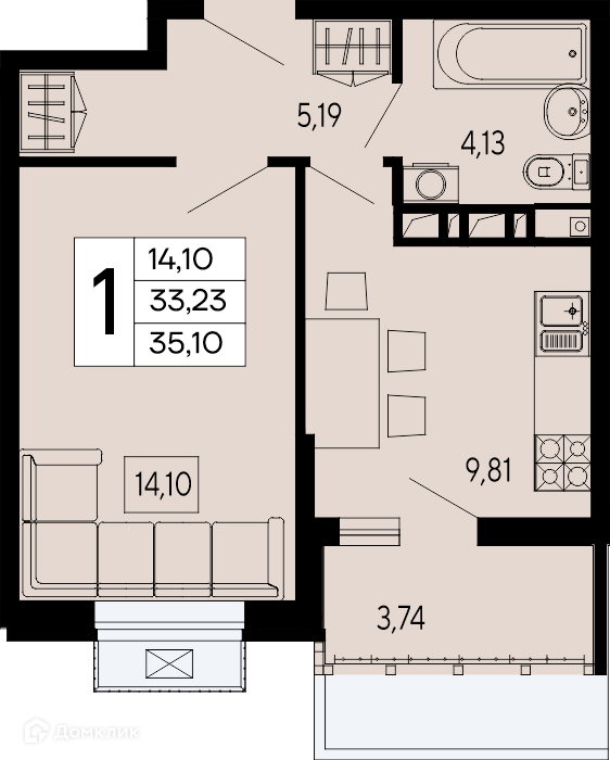 Планировка 1 комн. в "Эпос"