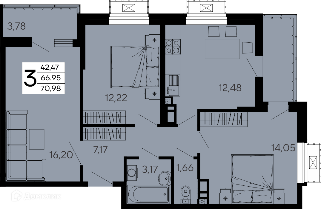 Предлагается 3-комнатная квартира в новом жилом комплексе ""Эпос"" 🏢. Квартира расположена на 3-м этаже 16-этажного дома. Отличный вариант для комфортной жизни.