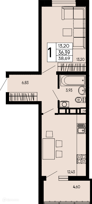 Предлагается 1-комнатная квартира в новом жилом комплексе ""Эпос"" 🏢. Квартира расположена на 3-м этаже 16-этажного дома. Отличный вариант для инвестиций.