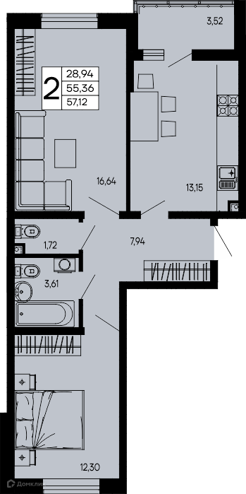 Предлагается 2-комнатная квартира в современном жилом комплексе ""Эпос"" 🏢. Квартира расположена на 2-м этаже 16-этажного дома. Прекрасный выбор для инвестиций.