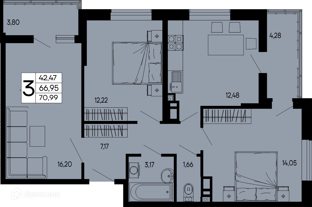 Продается 3-комнатная квартира в новом жилом комплексе ""Эпос"" 🏢. Квартира расположена на 14-м этаже 16-этажного дома. Прекрасный выбор для семьи.
